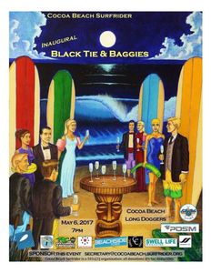 The Black Tie and Baggies event was hosted by the Cocoa Beach Chapter of Surfrider Foundation, in early 2017. As the sitting Chairman of CB Surfrider at the time, I had the opportunity to oversee and coordinate this amazing event. Everything from gaining sponsors, a venue, bands and entertainment, and arranging items and creating a format for a silent auction. ~Sandy