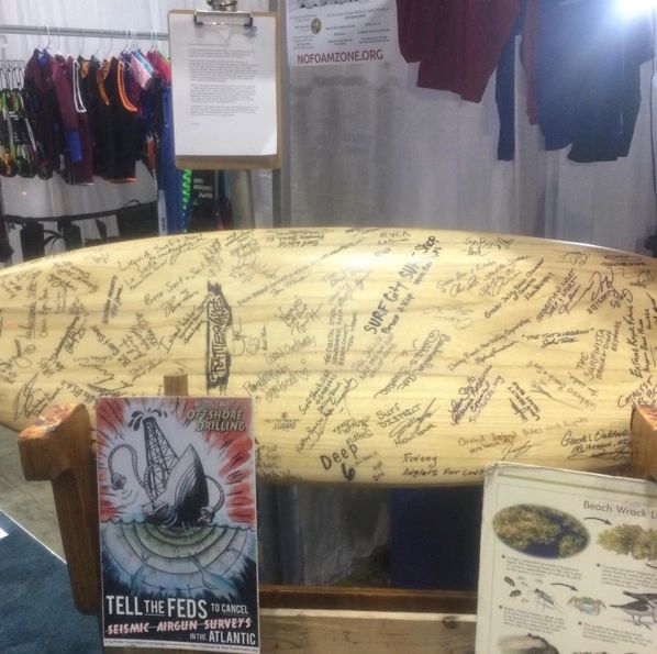 Firewire surfboards had donated a board to the Florida chapters of Surfrider Foundation. The board was to be signed by businesses that opposed the offshore drilling proposal on the East coast from Delaware to the Florida Keys. The board started in Miami and travelled up the East coast. Once it reached Cocoa Beach, I was given permission to take it to the Surf Expo in Orlando, Fl. There I had over 1000 surf related companies and interested parties sign the board. The board then travelled up the coast from chapter to chapter until it arrived in Washington DC. When I arrived in DC, I was reunited with the board and took it with me to the meetings we had on Capitol Hill, gaining the signatures of several members of both houses of Congress.